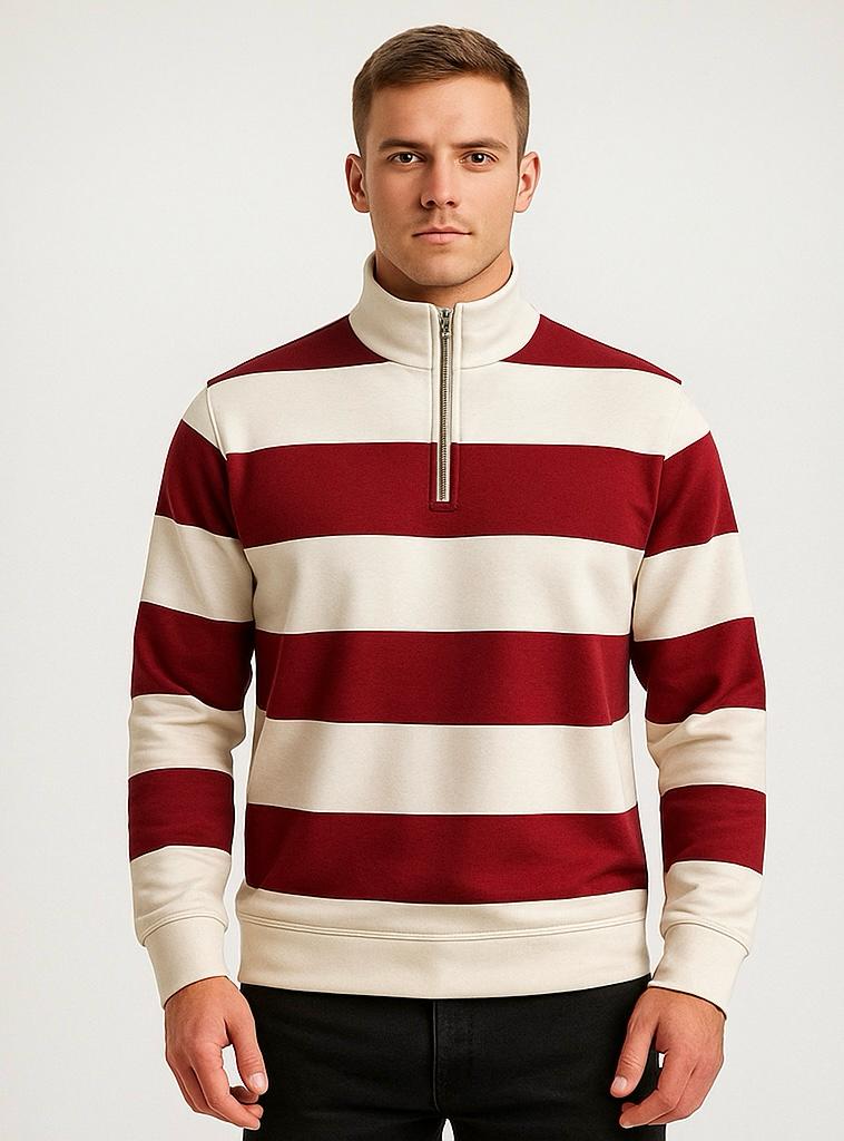 5790-2 Parkur ERK. Kalın Çizgili Yarım Fermuarlı Sweat *5