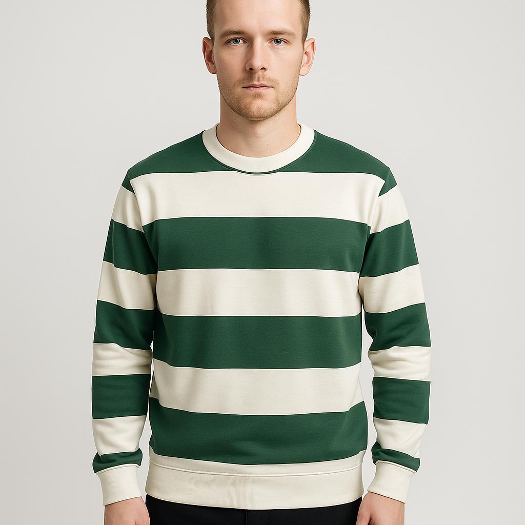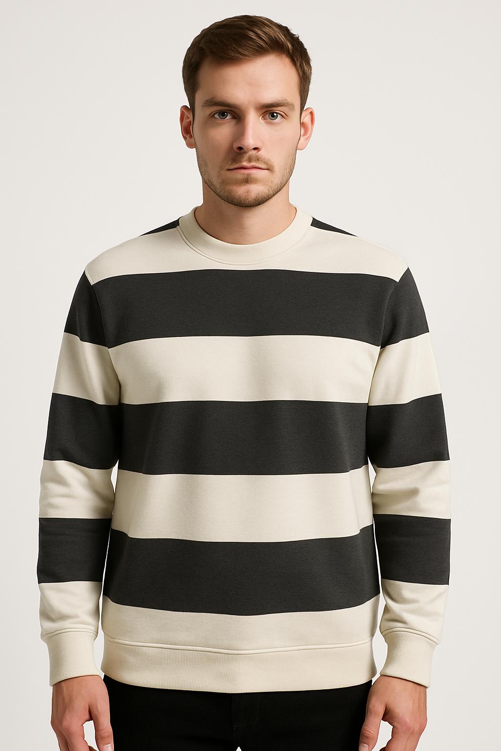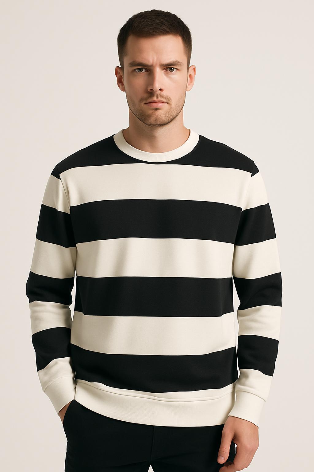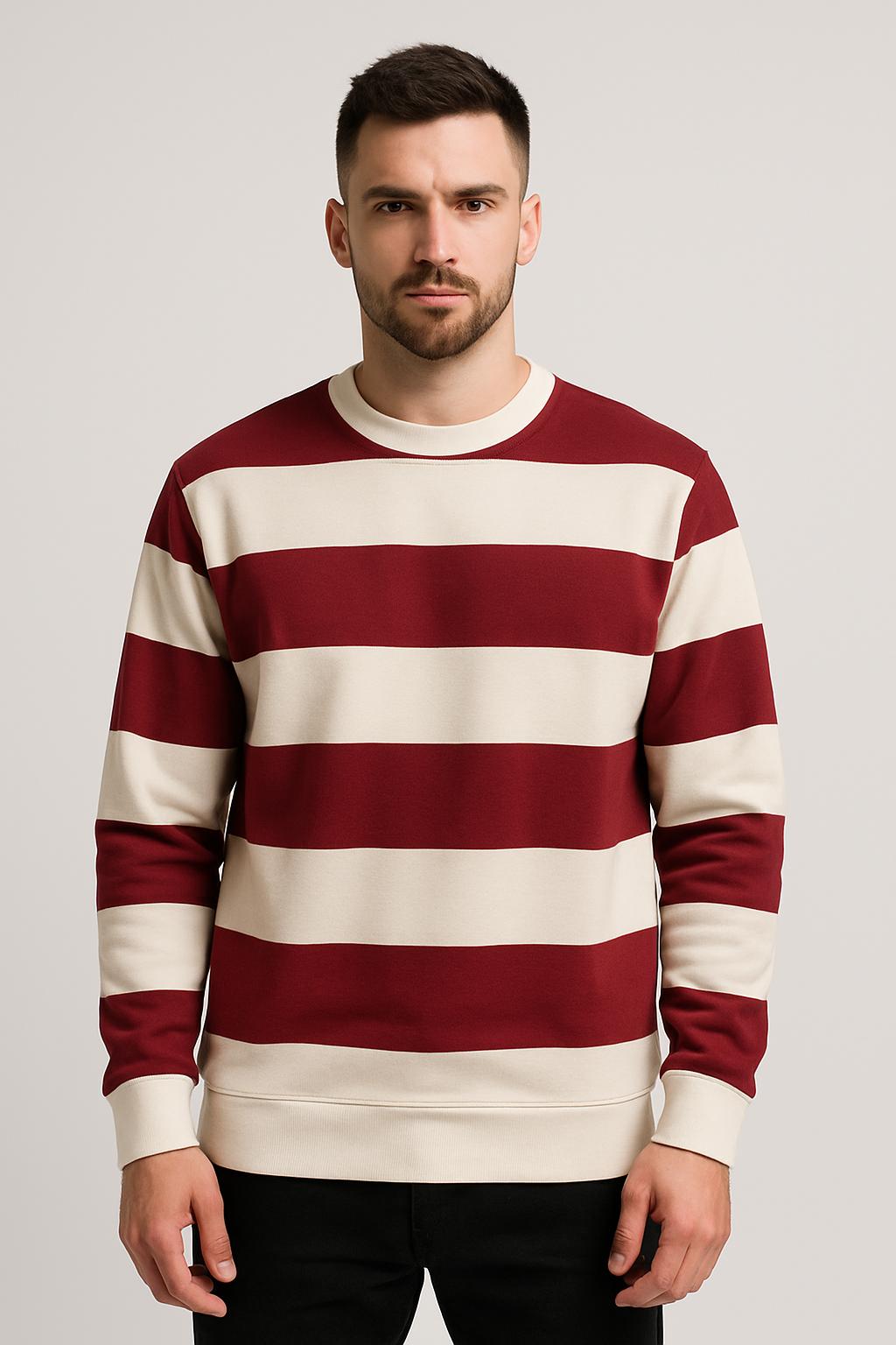 5790-1 Parkur ERK. Üç İplik Kalın Çizgili Sıfır Yaka Sweat *5